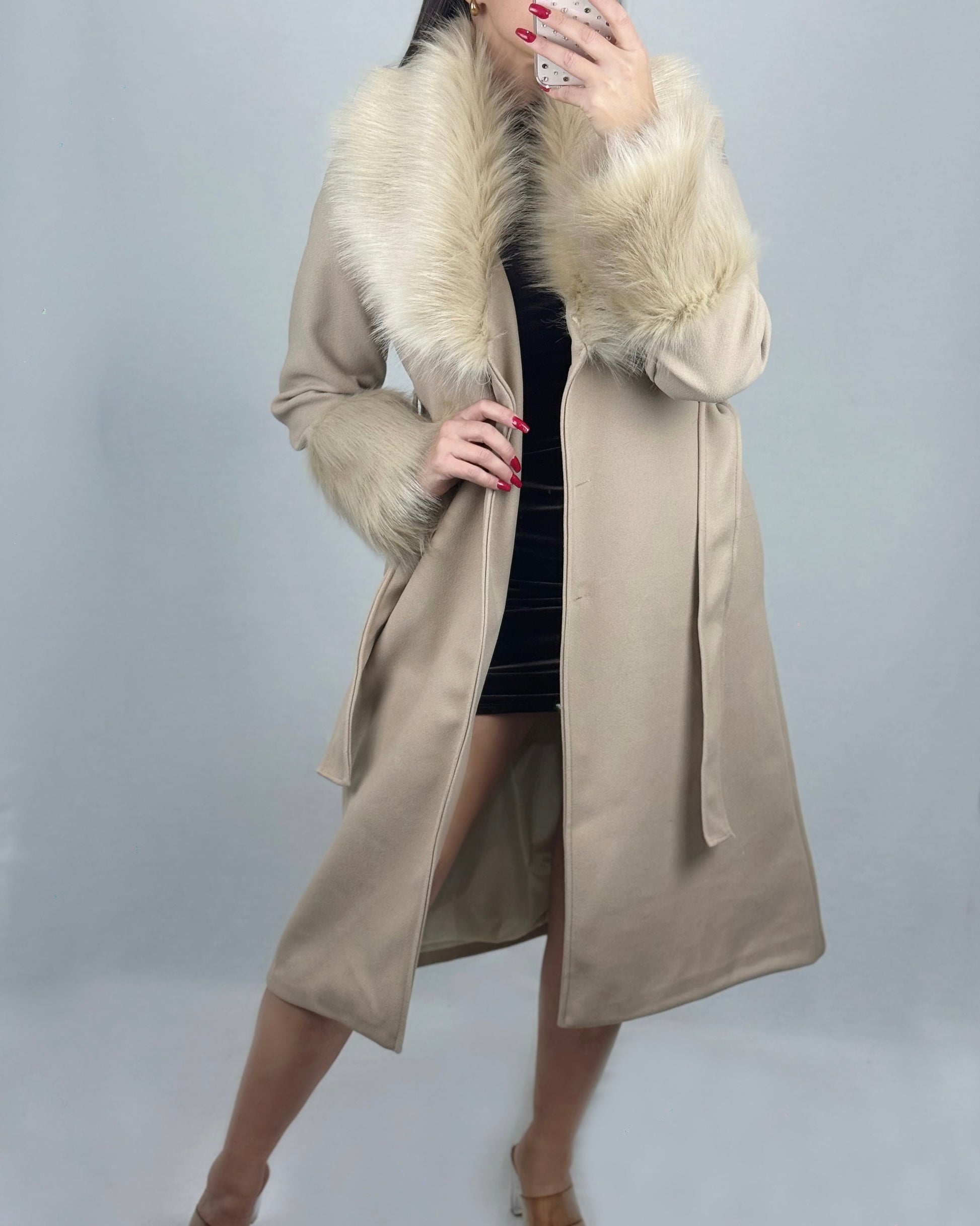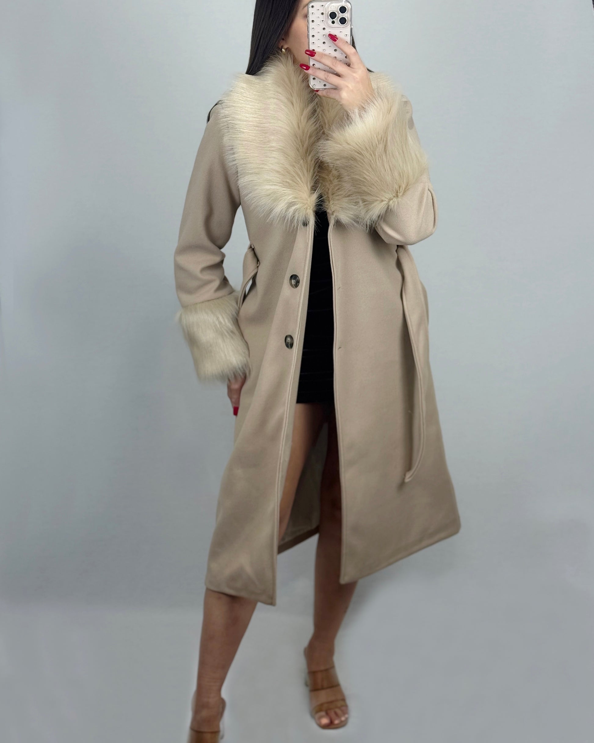 ABRIGO PAÑO PELO BEIGE
